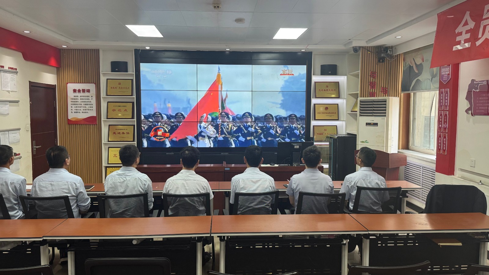 歷史燭照未來,精神永續(xù)傳承。為深切緬懷在抗日戰(zhàn)爭(zhēng)中英勇獻(xiàn)身的革命先烈,大力弘揚(yáng)偉大的抗戰(zhàn)精神,引導(dǎo)全體黨員、職工銘記光輝歷史、堅(jiān)定理想信念、強(qiáng)化責(zé)任擔(dān)當(dāng),9月3日,機(jī)運(yùn)工區(qū)黨支部組織開展了“銘記歷史偉業(yè),傳承紅色基因”主題黨日活動(dòng),組織全體黨員集中觀看紀(jì)念中國(guó)人民抗日戰(zhàn)爭(zhēng)暨世界反法西斯戰(zhàn)爭(zhēng)勝利80周年閱兵儀式現(xiàn)場(chǎng)直播。上午九時(shí)整,機(jī)運(yùn)工區(qū)全體黨懷著無比崇敬與激動(dòng)的心情,目光齊聚屏幕。伴隨著激昂雄壯的國(guó)歌奏響,鮮艷的五星紅旗在天安門廣場(chǎng)冉冉升起,大家心潮澎湃,肅然起敬。隨后,規(guī)模宏大、氣勢(shì)磅礴的閱兵式正式開始。屏幕上,一個(gè)個(gè)整齊劃一、威武雄壯的徒步方隊(duì),邁著鏗鏘有力、撼人心魄的步伐走過檢閱臺(tái),堅(jiān)毅的眼神、挺拔的身姿,充分展現(xiàn)了新時(shí)代軍人聽黨指揮的忠誠(chéng)品格和能打勝仗的過硬本領(lǐng);一列列代表著國(guó)家科技實(shí)力與國(guó)防現(xiàn)代化建設(shè)最新成果的裝備方隊(duì),鐵流滾滾,氣勢(shì)如虹,尖端武器依次亮相,彰顯了捍衛(wèi)國(guó)家主權(quán)、安全、發(fā)展利益的堅(jiān)定決心與強(qiáng)大能力;雄鷹呼嘯,劃破長(zhǎng)空,戰(zhàn)機(jī)編隊(duì)以精準(zhǔn)的隊(duì)形和磅礴的氣勢(shì)接受檢閱,描繪出壯美的藍(lán)天畫卷,宣示著捍衛(wèi)國(guó)家領(lǐng)空安全的鋼鐵意志。整個(gè)閱兵過程,秩序井然、威武雄壯、氣勢(shì)恢宏,生動(dòng)詮釋了人民軍隊(duì)“聽黨指揮、能打勝仗、作風(fēng)優(yōu)良”的強(qiáng)軍目標(biāo),全方位展示了在黨的堅(jiān)強(qiáng)領(lǐng)導(dǎo)下,國(guó)家日益強(qiáng)大的綜合國(guó)力和維護(hù)世界和平的堅(jiān)定信念。屏幕前,黨員們?nèi)褙炞ⅲ瑹o不被這震撼人心的場(chǎng)面所感染,民族自豪感與榮譽(yù)感油然而生,現(xiàn)場(chǎng)不時(shí)響起由衷的贊嘆和熱烈的掌聲。通過本次“銘記歷史偉業(yè),傳承紅色基因”主題黨日活動(dòng),機(jī)運(yùn)工區(qū)黨支部全體黨員經(jīng)歷了一次深刻的精神淬煉與思想升華。大家的歷史使命感、民族自豪感、崗位責(zé)任感得到顯著增強(qiáng),紛紛表示以更加飽滿昂揚(yáng)的精神狀態(tài)、更加求真務(wù)實(shí)的工作作風(fēng)、更加開拓創(chuàng)新的進(jìn)取意識(shí),恪盡職守,銳意進(jìn)取,全力以赴保障原煤運(yùn)輸安全高效,為工區(qū)及公司的持續(xù)高質(zhì)量發(fā)展貢獻(xiàn)全部力量!